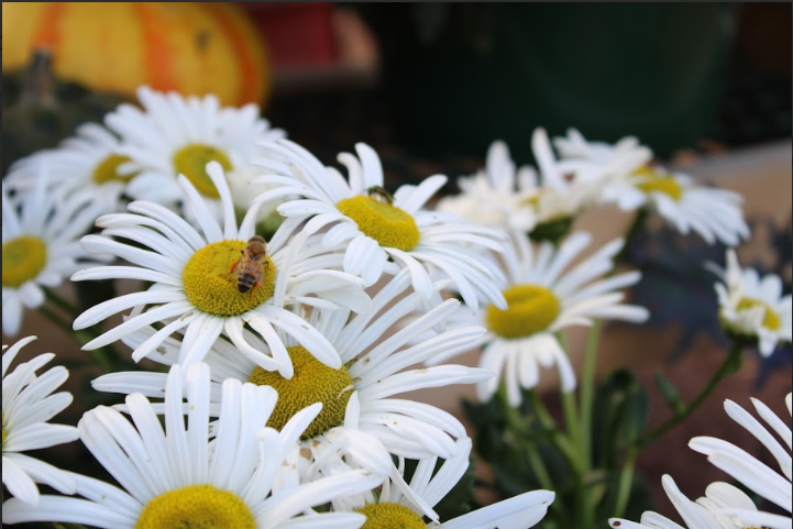 I took this photo at the beginning of fall at a plant shop. I like that I was able to catch the beat on the plant, but I wish I could have gotten it in a brighter light, along with me trying to catch the bee flying.