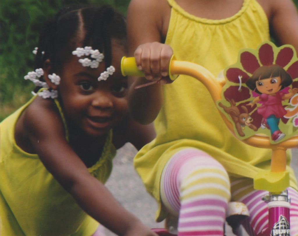 (I’m on the left, my sister is on the right) I don’t know the story behind this picture, I don’t know why it was taken, what the day was, or anything. All I know is that I was probably 2 years old, maybe a little older, and I was so cute. (I’m on the right, my sister is on the left) This picture was taken on Christmas. I remember the story, my family (mom, dad, sister, and I) went to New York for Christmas. We visited my aunt and her family, I believe, if I am correct, this was the year I spent Christmas with my brother, which I had never done before. I was probably 3 or 4 again. These pictures took place on the same day, it was a beautiful day and my sister, and I went out to play. We only had one bike and I ended up pushing her on it. Everyone thought it was so funny because she’s older than me, and I ended up pushing her. I was probably 3 or 4 and she was probably 5 or 6. I don’t remember this day, but this is a beautiful picture.