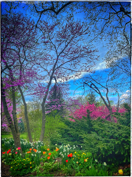 This art is so beautifully composed, from the framining of the trees and the complementing bushes on the bottom. To the incredible bold and beautiful pops of colors from the flowers and the leaves. It inspires me to use more colors in my work! I saw that it was taken on your iPhone 12 Pro, which is impressive, And I’m not sure if it’s edited, but if it is it’s still wonderfully done!