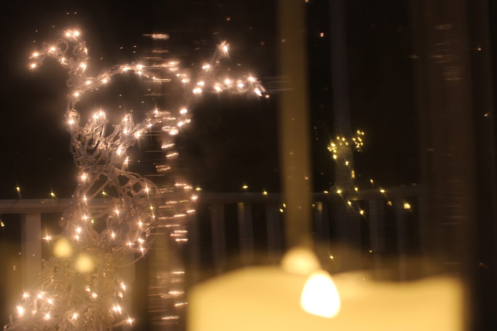 I am commenting about your third photo. It has amazing texture! I love the light and it’s reflection on the bulb and how the dust on the tree looks like snow. It also has wonderful balance and the lighting makes it feel warm.